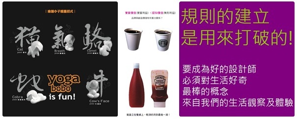 | 配合此次展覽特別規劃【別吵!白日夢冒險王!】創意講座,邀請麥傑廣告/陳進東總監主講,透過陳總監對人的觀察,旅行生活的體驗,詮釋獨特的生活美學、將平凡化為不凡!當日也特別邀請中華平面設計協會章琦玫理事長為大家介紹協會背景及活動~ |