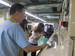 | 由品保部的阿貴課長,為這群熱血青春洋溢的師生們介紹技嘉科技,以及主力產品「主機板」的生產過程∼在課長細心且盡善盡美的解說下,同學們對產品製作流程及工廠內部運作有初步的概念。 <詳細內容> | |
