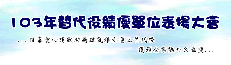 內政部役政署於103年12月10日舉辦「103年下半年替代役績優單位及役男表揚活動」,