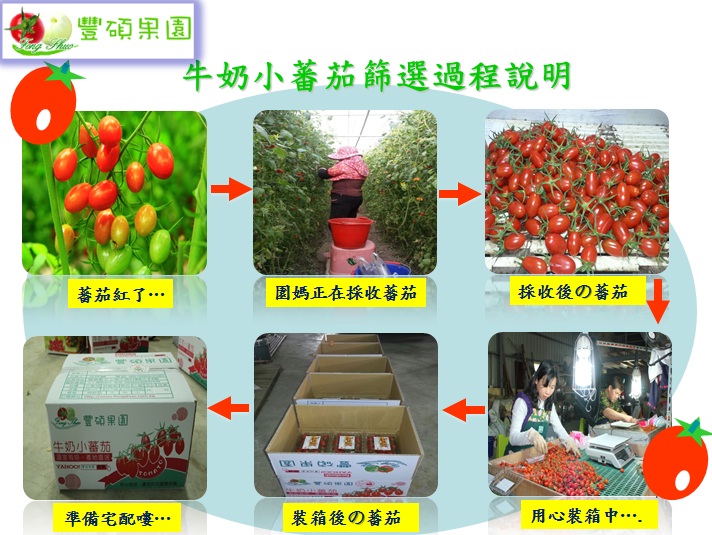 父母務農迄今40多年,畢業於雲科大電機研究所碩士、曾任光電產業大陸區生產主管的沈朝富先生,為照顧家庭並且深耕自我人生的價值,於 2011年起放棄高薪及升遷,回『嘉(義)』務農,為自己的人生開拓了新的視野。 現今氣候因溫室效應造成農作物產量銳減,且品質良莠不齊,收成相當不易,由一般農業轉型成溫室精緻農業技術經營,建立了科技化溫室管理設施,並且不計成本使用大量頂級鮮奶、施用天然有機肥...等各種農業栽種改良,注重消費者「食用品質安全」,讓客戶享用到最健康、最甜、最高品質水果。 相信同仁們都有品嚐過豐碩果園的牛奶蕃茄,除了香甜多汁,更“食在健康”,讓我們一起來聽聽科技農夫沈朝富先生分享他的蕃茄是怎麼種出有機好味道? |
