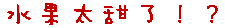 • 台灣水果真的很甜,營養師說對糖尿病患不利。 • 農委會為了提高台灣優質水果外銷到東南亞的產值,將進行一波水果「甜酸比」的改良計畫,像是金鑽鳳梨、鳳梨釋迦等水果都要提高酸度、降低甜度,讓水果風味更佳。 • 除了糖度,糖酸比也很重要,現在農民改良水果的技術很好,一味要求甜度,反而失去水果原有風貌。