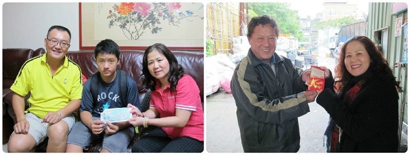 今年過年我們在寶慶街的回收站也曾發春節紅包給岳弘父親(圖右),