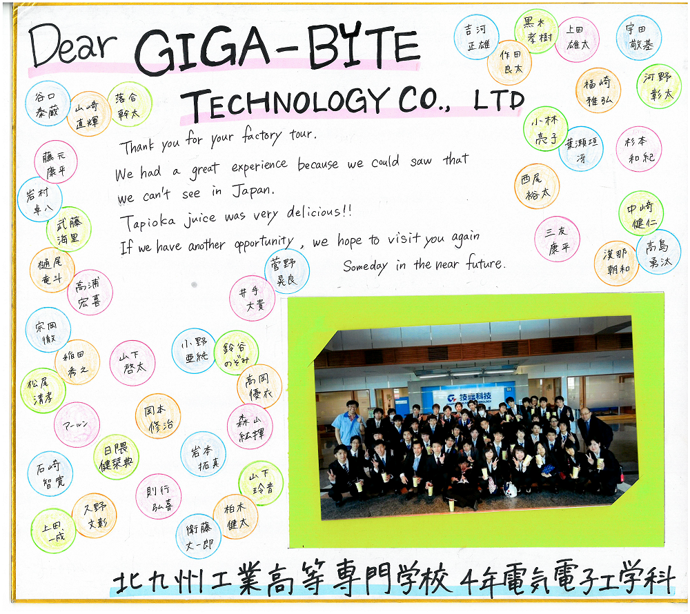 技嘉科技南平廠的大會議室湧入來自日本北九州工業高等專門學校同學們。