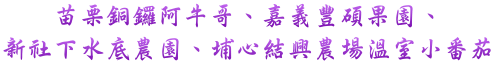 更支持4位返鄉務農年輕農友生產的小蕃茄(苗栗阿牛哥、新社劉達孟、嘉義豐碩果園、及埔心結興農場)
