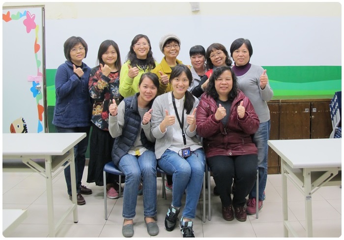 班上新住民媽媽兩位來自大陸、一位來自越南,以及退休在圖書館及托兒所服務的樂齡志工們,