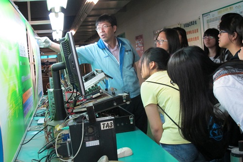 | 由品保部的阿貴課長,為這群熱血青春洋溢的師生們介紹技嘉科技,以及主力產品「主機板」的生產過程∼在課長細心且盡善盡美的解說下,同學們對產品製作流程及工廠內部運作有初步的概念。 <詳細內容> | |