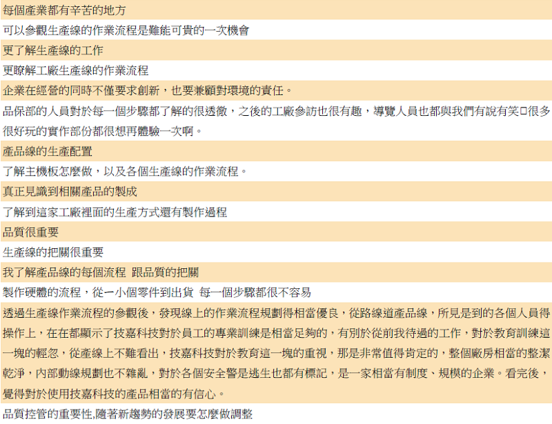 同學們了解技嘉的背景和產品後,由品保部同仁們帶領大家進入產線參觀∼