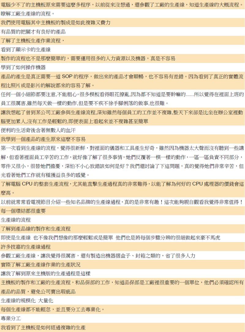 對技嘉和主機版產品有概念後,同學們直接深入工廠,親身體驗生產線製作過程。