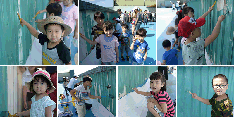 孩童時期的我們心中,都有個小小夢想,希望擁有一個超大的畫 板,可以盡情地揮灑、創作,但往往都無法如願,難得這次的美化牆 面的彩繪計畫,不僅滿足小小孩,也勾起每個人心中哪一絲絲的童年 回憶,讓大家暫時遺忘繁忙的工作與壓力,帶著雀躍的心情重拾畫筆 ,展現出童心未泯的一面。