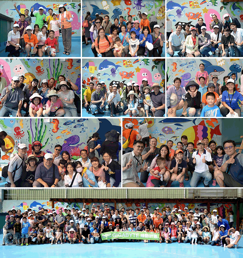 透過一次次團隊的凝聚力,大家大手攜小手,頂著烈日,帶這興奮的心情,來參加這項活動,大夥們有的人負責指揮分工、有的人負責塗色、有的人負責調色,各司其職,小孩們拿著筆刷,瞇著眼、開心的畫著,這畫面就如技嘉之歌,『技嘉有你 技嘉有我,一起分工合作成就以後,共濟同舟並肩奮鬥 打造屬於家的感動』在我們這場盛會展現無遺。
