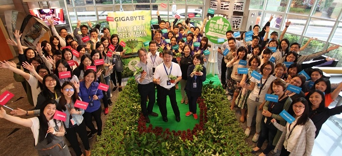 世界地球日前夕,技嘉科技與德國Plant-for-the-Planet基金會合作啟動「樹造希望.綠動地球」計畫,除號召員工、合作夥伴和消費者一起種樹外,並於營運總部、子公司、南平廠發送小盆栽,齊心為地球播下綠色種子,期望與各利害關係人一起守護地球你我的家。今年劉先生購買了10種不同的植栽2,000盆,分別在營運總部、南平廠、矽谷一期 客戶服務中心、矽谷二期 盈嘉及移動產品事業群 發送小盆栽,與同仁一起啟動友善地球的綠色行動。