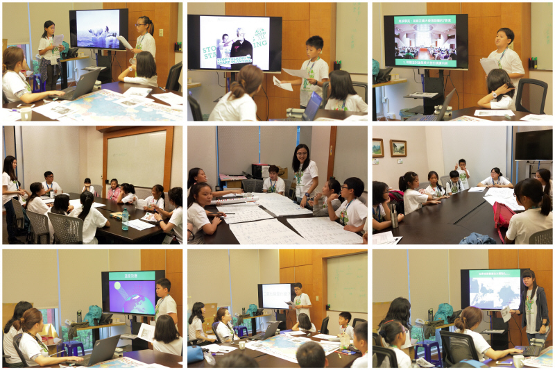 小朋友的活動序幕就從「氣候正義大使演說」開始囉,由於當天早上台灣還沒有正式的氣候正義大使,故本次活動序幕,由Plant-for-the-Planet基金會選派Nini主持人,為所有氣候正義大使候選人來場精彩的演說,這場演說更是為氣候學苑最後成果發表的重頭戲做暖身,也讓所有學童們思考與討論溫室效應成因、氣候變遷成因以及影響、臭氧層破洞等重要的氣候問題。在演說過後,37位學童在來自政大的大哥哥大姊姊們的帶領下,開始真正踏出認識世界、了解氣候問題的第一步! |