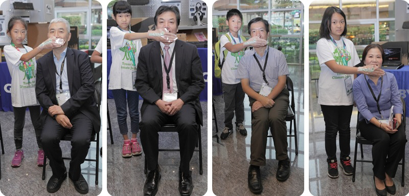 活動當天儘管大雨不斷,但仍澆不熄我們以及來自16所國小的學童們願意共同參與氣候議題的決心。一整天的氣候學苑活動,就在葉先生宣示我們將持續深耕環境永續教育的決心,以及新北市環保局局長劉和然、北區環境教育區域中心教授葉欣誠的勉勵下正式開跑。 此外,葉先生、劉局長、葉教授以及基金會麗華姐更是親自擔任活動的代言人,拍下Plant-for-the-Planet極具代表性的宣傳照片,為台灣首場氣候學苑活動添增風采。 劉局長在致詞當中提到「氣候變遷問題,不僅是單純二氧化碳排放而已,也同時是公平、正義的問題,這是一個不論大人或是小朋友都須了解的課題」 同時身為台師大環教所所長的葉欣誠教授則提到「專家們已預估未來30年內,全球大氣中的二氧化碳將超過450ppm,意即今天坐在場下的學童們未來勢必要面對2度C的升溫門檻,面對這樣全然不同的生存環境,這是今天在場所有人的責任,也是未來的學童們需面對的挑戰」 |