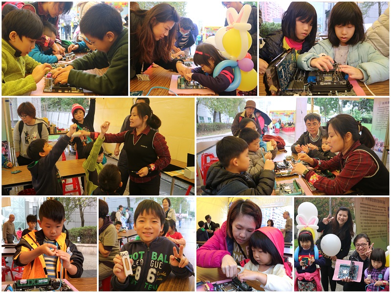 共同為大小朋友帶來:電腦硬體組裝、重心的祕密、科學科技新視野、創意指印畫、趣味玩紙膠帶、藝術翻翻樂等藝術及科普的活動,