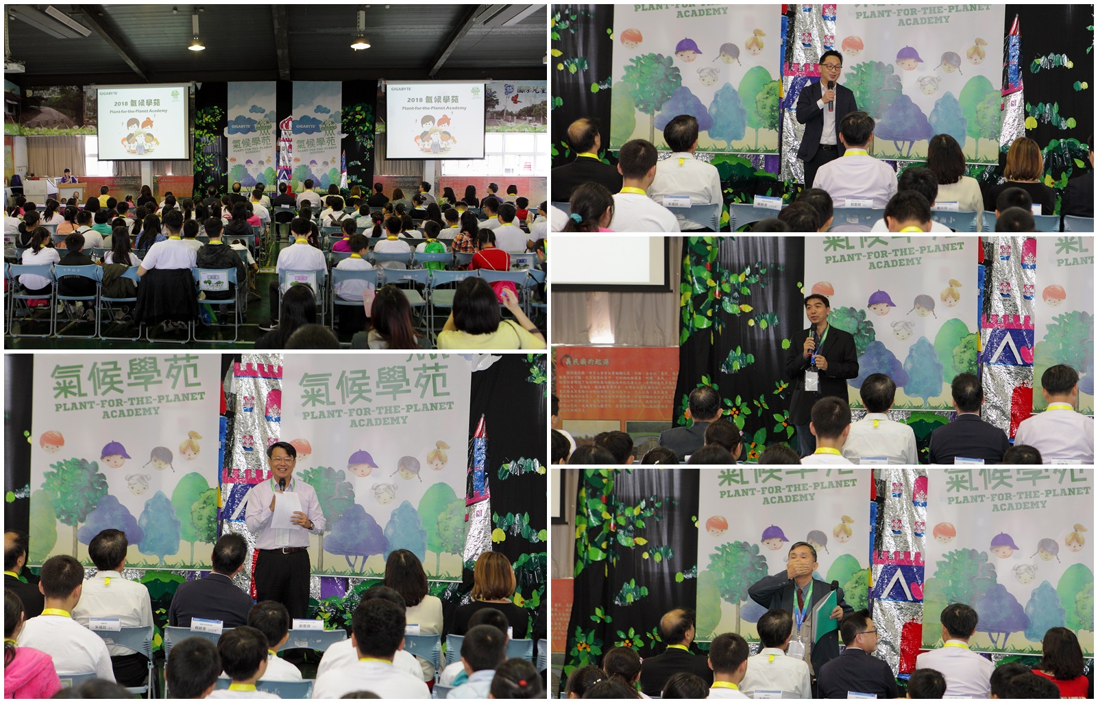 開幕典禮上,首先永續發展辦公室朱福政處長代表技嘉科技感謝大家蒞臨,說明這一場氣候學苑是一次突破,不僅首次在桃園辦理,也是目前為止辦理過規模最大的一場氣候學苑。桃園市政府教育局賴銀奎主秘強調面對當前環境問題與危機,大人們雖已著手想改變,但下一代的角色更是至關重要,期許學童在一日活動後可以學習到更多,並希望技嘉科技還能夠在桃園辦理第二場、第三場…的氣候學苑;本次最重要協力夥伴中平國小的劉雲傑校長感謝技嘉給予桃園的國小這麼特別機會,讓學童從小開始培養環境素養與覺知,共同守護賴以生存的環境。 中原大學電資學院郭財吉副院長引用小朋友熟悉的「愚公移山」故事,提點其實今日已不能再追求人定勝天,而是學習人與環境和平且友善地共處,且應該從小就開始學習;開南大學資管系陳正雄教授致詞時強調,地球只有一顆,必須大家一起來守護,並鼓勵小朋友做到「333」,今日學習後,能在「3分鐘」內將自己想守護地球的方式說出來,「3個月」後能否將行動付諸行動,以及「3年」後能使行動產生成果。 |