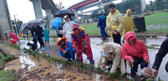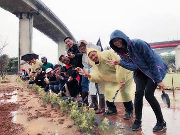 我們團體一行人共78位參與本次植樹活動,穿起雨衣雨鞋撐起傘把種給種好種穩