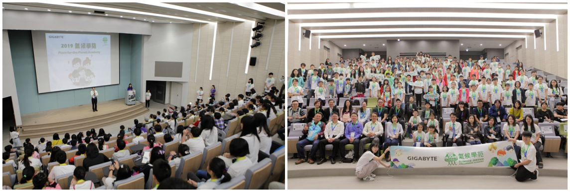 2019年4月20日地球日前夕,德國Plant-for-the-Planet基金會 X 技嘉科技的第四場氣候學苑在政大商學院盛大展開,此次協辦單位政大商學院不僅提供優質的玉山國際廳與教室場地,還招募30位政大學生擔任教學和行政志工,共同帶領來自13所國小共114位小朋友,完成一整天的學習與體驗課程,成為新一批引領下一世代因應氣候變遷問題的氣候正義大使,至此,技嘉科技已為台灣培育了321位氣候正義大使。 |