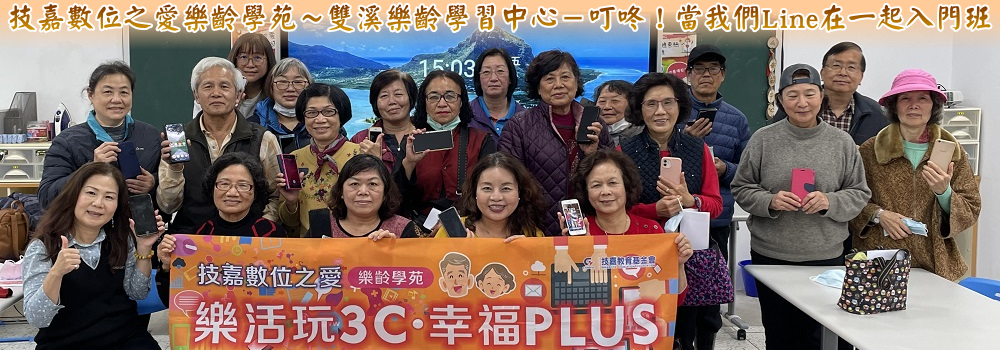 技嘉教育基金會「數位之愛樂齡學苑」∼巡迴大台北地區教學智慧型手機,秉持技嘉讓科技美化人生之宗旨,期讓銀髮朋友輕鬆樂活玩3C!三月受新北市雙溪樂齡學習中心邀請,3/5、12、19每周五在雙溪國小為阿公阿嬤開「LINE在一起入門班」,添加社區客製課程∼認識Google表單、線上報名。