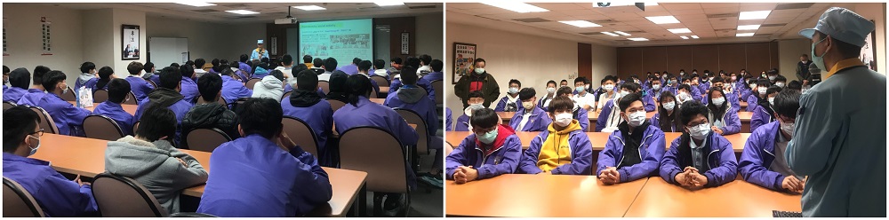 在參觀產線時,同學很認真的聽著各樓層解說員的介紹說明,大家看著各式各樣的機器感到好奇,頻頻向解說員請教機器的功能及用途。