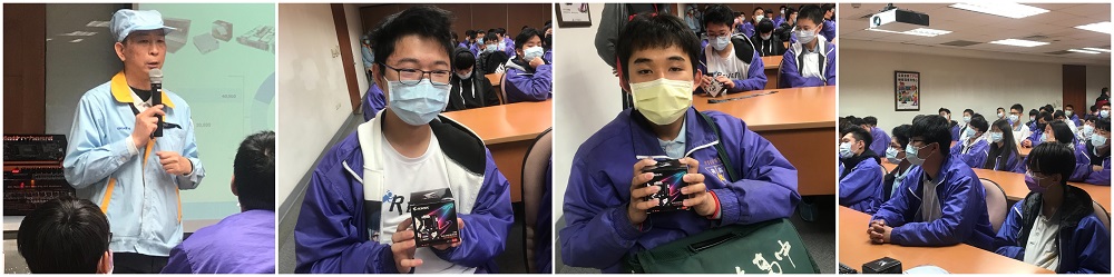 阿貴將繁複的生產線,拆解成SMT、DIP、測試及包裝四個主軸後,依序深入淺出地講解∼在課長細心且盡善盡美的解說下,同學們對產品製作流程及工廠內部運作有初步的概念。基金會也準備了禮物送給參與Q&A的同學∼
