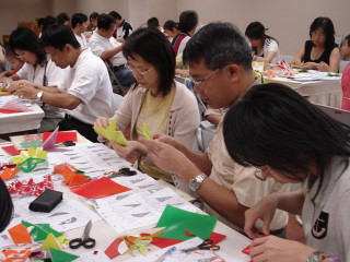 相信大家走的兩腿發麻了吧! 沒關係,咱們下午行程讓大家可以喘口氣, 那就是--創意創作∼中國傳統剪紙教學喔! 相信在座的小朋友們應該已是躍躍欲試囉!