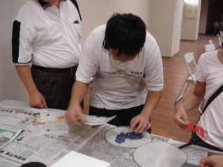 剪紙作品完成後,貼在畫扇上,外表美觀又能搧出涼爽的風, 看大家大排長龍的模樣,就可以知道大家有多麼期待囉! 把自己的作品貼在畫扇上,感覺....多了那麼份詩情畫意喔!對吧∼^^ |