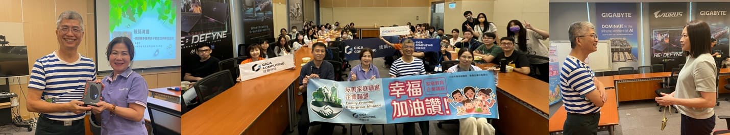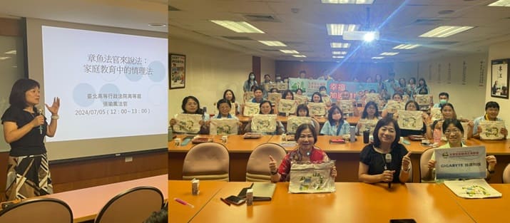 7/5(五)由桃園市政府家庭教育中心與技嘉教育基金會、技嘉科技共同合辦「友善家庭職場企業聯盟」講座,第一場邀請到台北高等行政法院法官「張瑜鳳」講師,帶領40位技嘉同仁從家庭中談法律,檢視親子關係如何與社會生活連結…<詳細內容> |