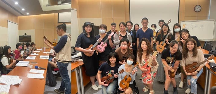 7/15(一)小唐老師非常用心的編了教材與樂譜,並在課堂間依各種彈奏技術問題從細部耐心講解,讓每一位初學者都能夠一步步慢慢上手~會議室裡隨著每位同仁此起彼落的彈奏聲,讓偌大的空間頓時充滿了歡快的氛圍…<詳細內容> |
