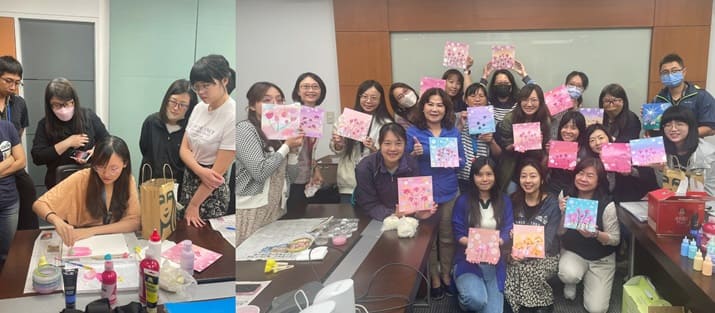 7/12(五)我們邀請到明維基金會壓克力繪畫班講師、同時也是技鋼科技的同仁鍾慧馨老師,利用下班的時間,帶領大家藉由繪畫,來進行互動交流,除了學會如何打底及畫銀河外,也能從活動的小遊戲中更加瞭解彼此的個性以及共通點等…<詳細內容> |