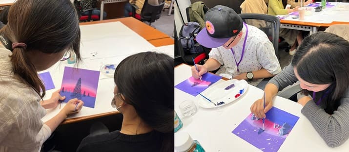 11/21、22舉辦第十四場-「壓克力畫」活動~晚上下班後,和新朋友一起用壓克力顏料,畫出屬於自己的聖誕節作品~將繪畫過程拆成好幾個階段,講師示範與繪畫中間,也穿插了許多互動環節,有多人分組,也有兩人聊天…<詳細內容> |