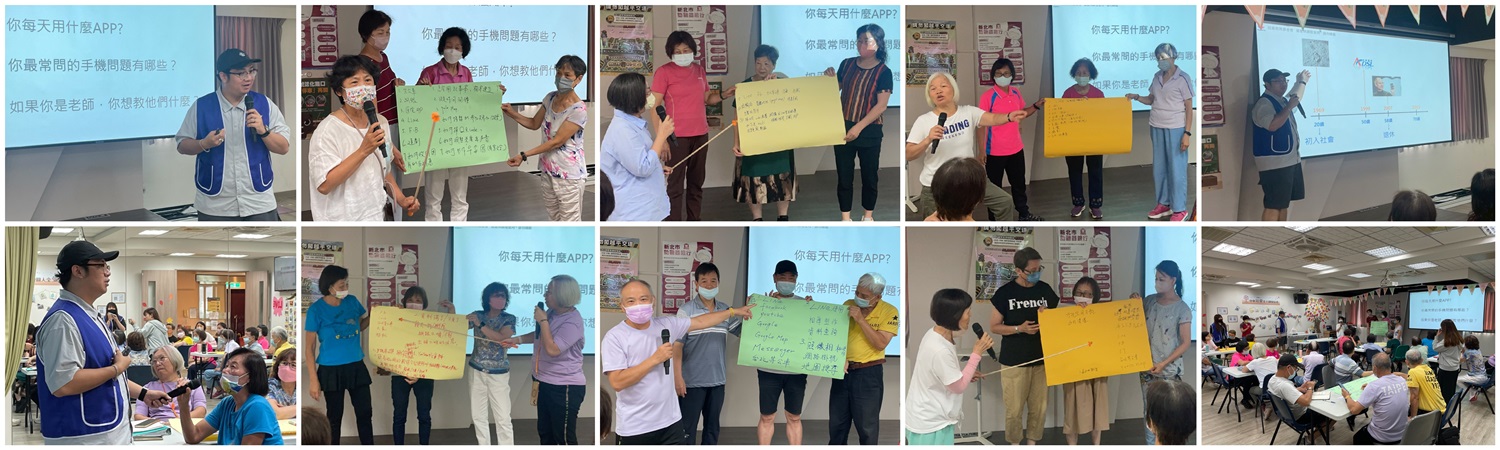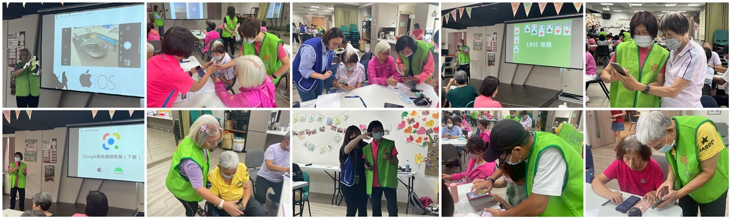 課程中,除了智慧手機操作教學,如LINE功能、相機拍照、Google智慧鏡頭,還有講師之教學概念、教室管理方式、簡報技巧、小組討論等…以及最後的講師試教及助教實戰演練。即使上台時有許多學員都很緊張,但最後大家還是帶著笑容與自信完成挑戰,希望能逐步成為會教、願教、會教的數位傳愛種子!
