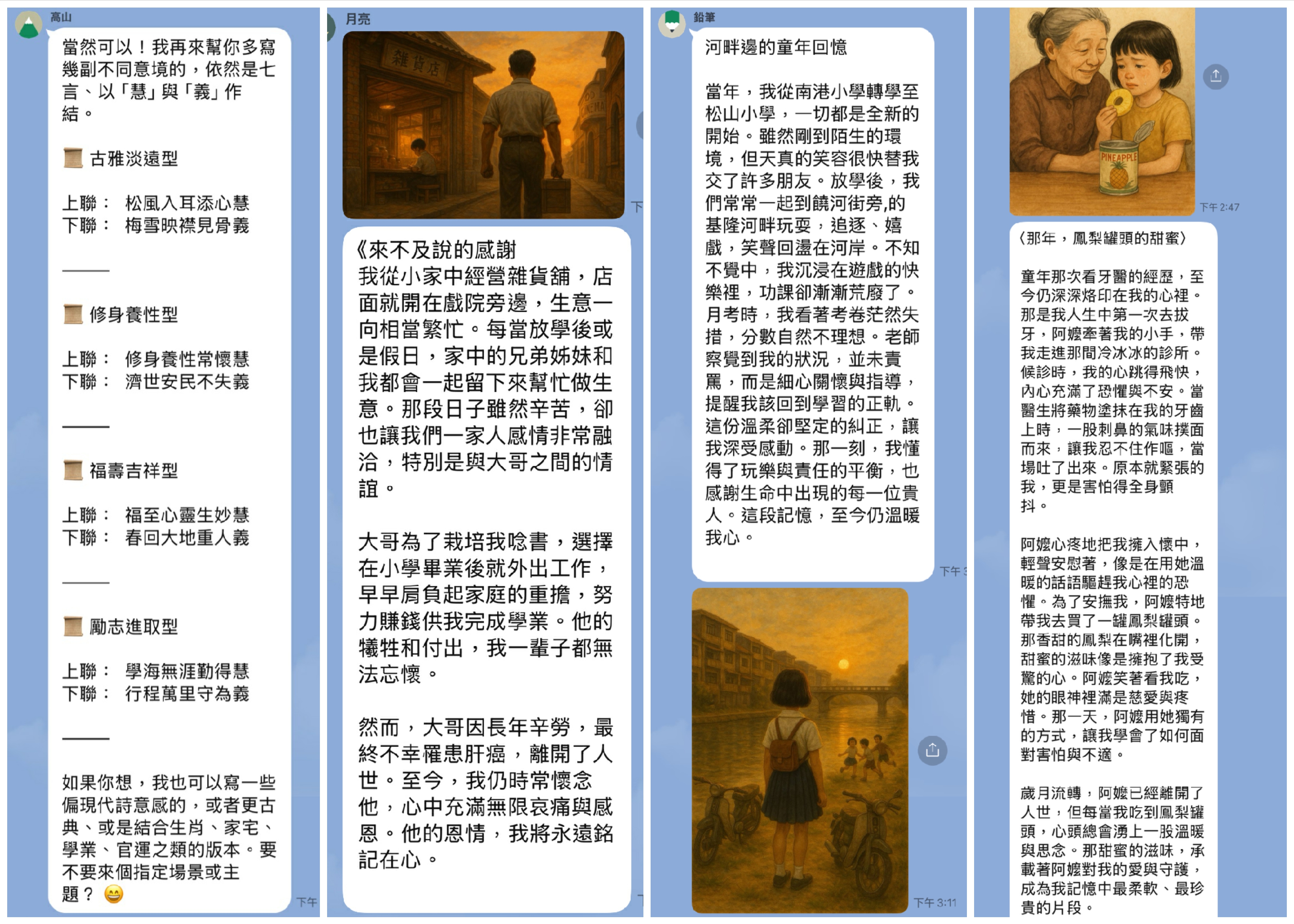 其中ChatGPT的課程,它是一款OpenAI開發的人工智慧聊天機器人程式 ,除了讓長輩們了解該如何問對問題來得到解答!還能夠順便訓練溝通技巧,可以透過形容請ChatGPT幫忙取名字或是生成一張圖片,又或是藉由詢問來得到一份食譜、一首歌甚至是一首詩,每一位長輩都帶著很新奇的心情來學習如何與AI對話,並且發現了這個科技工具的無限可能,這不僅是一次學習的機會,更是讓科技走進長輩們的生活,幫助他們擁抱數位世界的美好時刻!