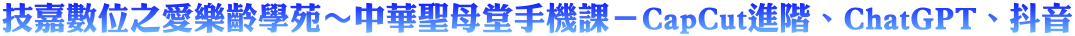 因應智慧型手機平板使用者大幅增加,銀髮學員期能跟上時代潮流,和同儕及子女間互動零時差,幫助提昇自信∼6/6、13、20每週五(共三週課程),技嘉基金會『數位之愛樂齡學苑』為中華聖母堂開辦;三週豐富課程,技嘉基金會周軒勤(小軒)老師介紹多款實用的功能和APP,如:ChatGPT、CapCut、抖音…等,小軒老師教大家如何使用∼