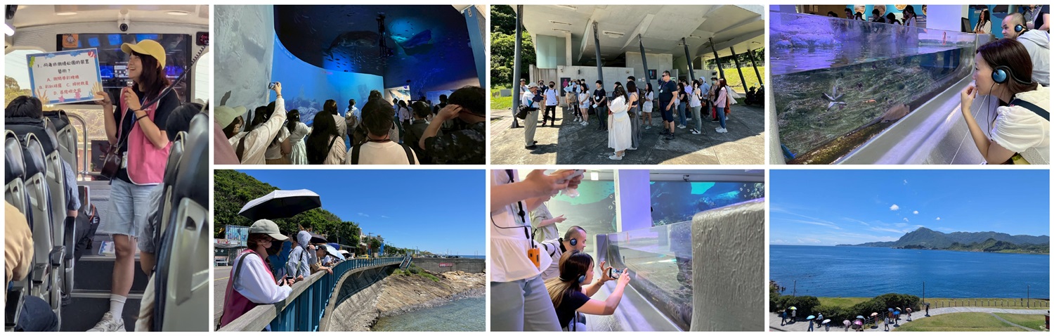 到潮境智能海洋館看到超大水族箱魚群悠游、水母、小丑魚、花園鰻等等,導覽員講解珊瑚和鱟的復育等等,最後一起完成分組任務,讓大家在不知不覺中凝聚小組氣氛。聽到參與者說:「好像回到學生時期的班遊一樣」