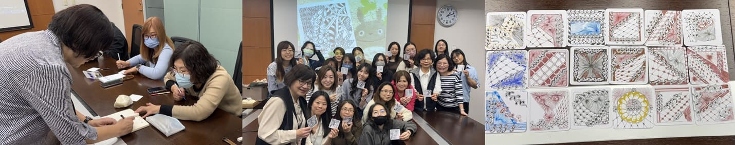 自明維教育基金會開辦終身學習課程系列以來,禪繞畫持續以獨特魅力成為同仁們的心靈避風港,在工作及家庭繁忙之餘,只需要隨手一枝筆及一張紙,調節呼吸節奏,緩慢地、專注地勾勒出心靈經緯,與禪繞連結放鬆心情。邀請到一位擁有美國禪繞畫認證的歐玲瀞Olive老師,帶領25位技嘉同仁於每周一中午來一場舒壓療癒的午間舒心繪…<詳細內容> |