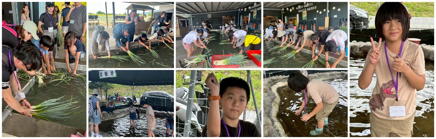 在等待麵包烘焙出爐的空檔,大家戴上斗笠、捲起袖子,走進翠綠的蔥田親自拔蔥,孩子們貼心地幫爸媽戴好斗笠,一家大小在田間歡笑聲不斷,回到農場後還能自己洗蔥,或是在一旁抓抓泥鰍、逛逛販售在地特產的小舖,大小朋友都玩得不亦樂乎。 |
