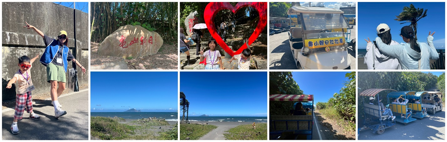 飯後的下午,一行人搭上晶煌龜山朝日拉拉車,沿途可遠眺壯麗的龜山島,伴隨著輕快的音樂和專業導覽員生動的解說,還有貼心的隨行攝影幫大家捕捉美好瞬間。途中停靠兩個景點,先到五路財神公祈求發財金,再到觀景台一覽無遺的海天美景,留下滿滿回憶。 |