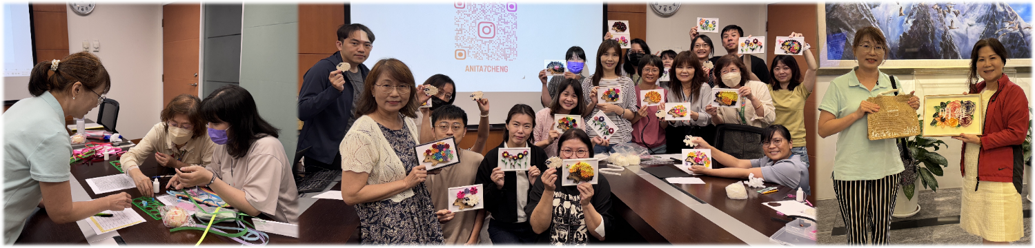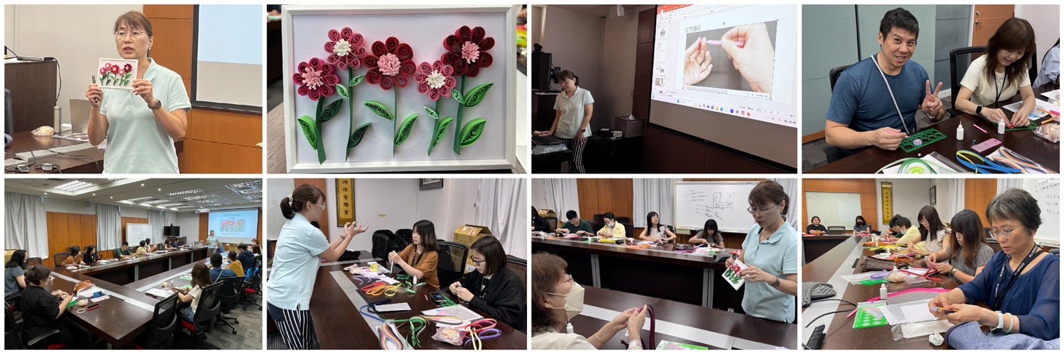 明維終身學習系列課程∼衍紙課A班,共6堂課(2025/6/16∼7/21每週一),邀請到一位鄭美瑜Anita老師∼衍紙是結合創意與療癒的手作課程,由Anita老師細心引導&帶大家從基本的衍紙技巧開始,一步步認識這門充滿細節與美感的藝術。多數學員都是第一次接觸衍紙,從最初的好奇到動手創作,大家沉浸在紙條轉折之間,彷彿走進了靜謐的小宇宙。隨著一朵朵小花慢慢成形,過程讓人愉悅又放鬆,紛紛表示有種被療癒的感覺!