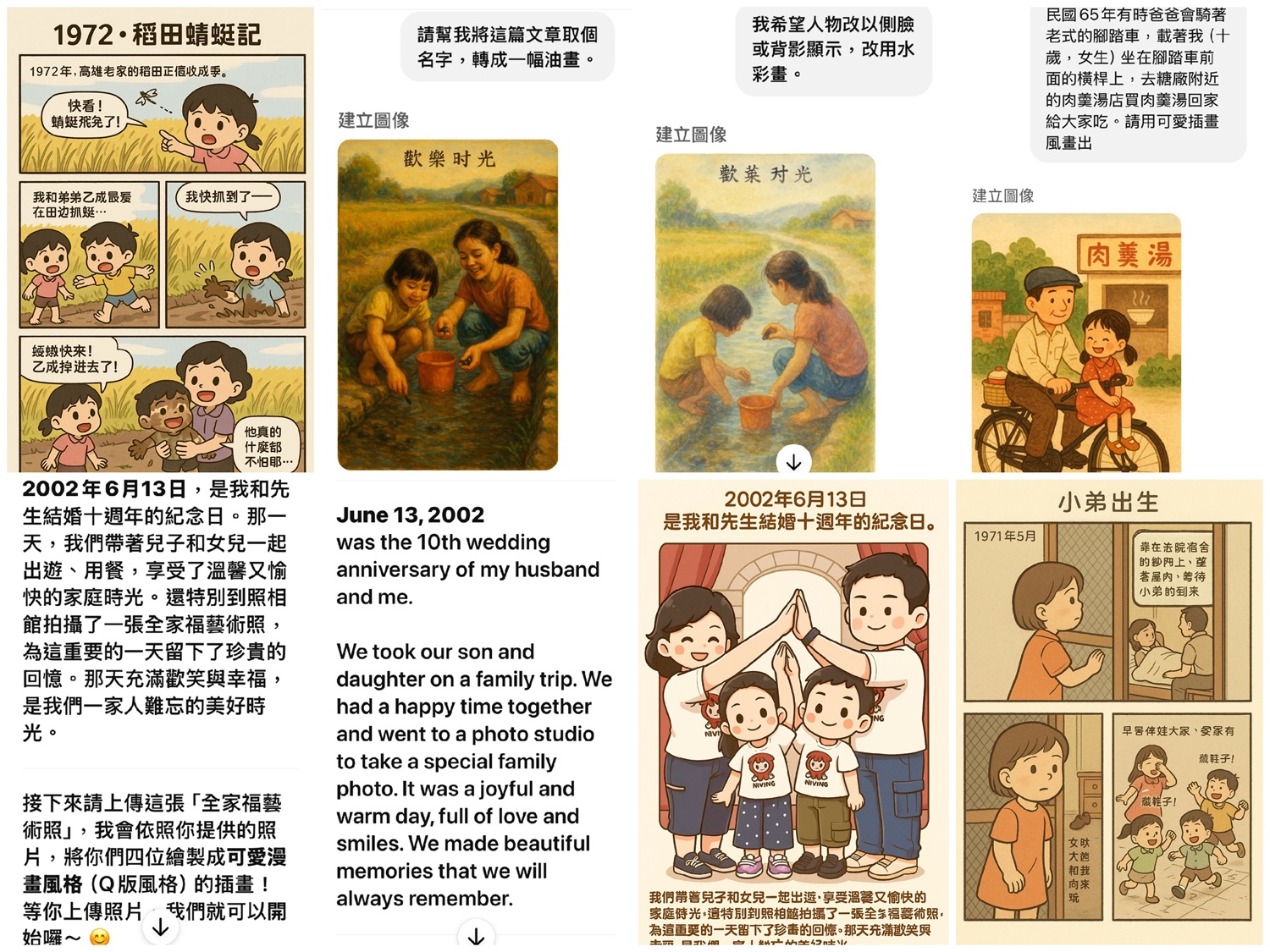 使用ChatGPT讓我最好奇、想嘗試的功能是,只要給個故事大綱,它將能變成一篇文章,還能按自己喜歡的方式來編輯圖片,製作過程很有趣。