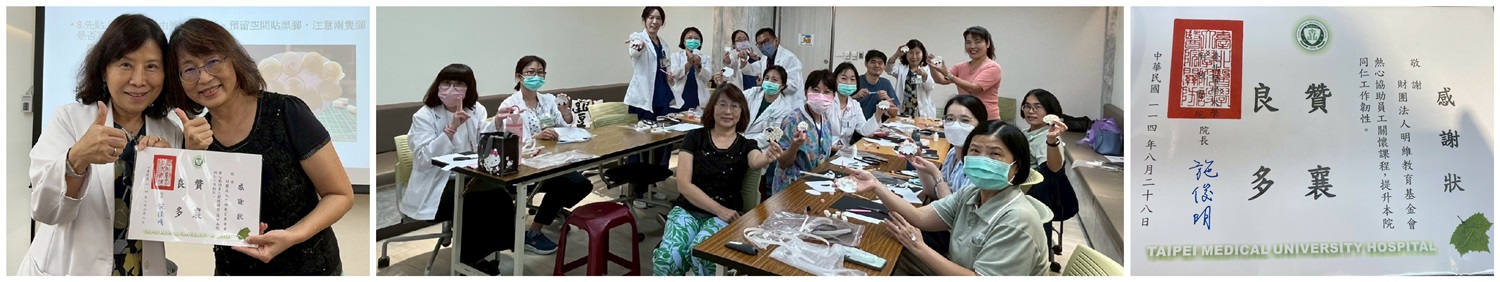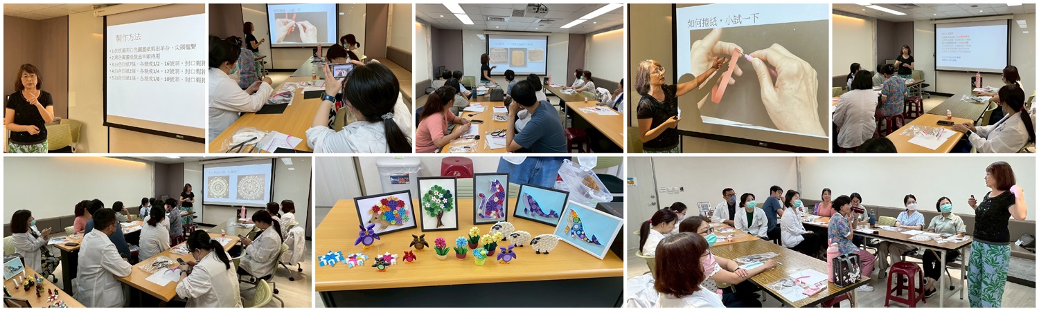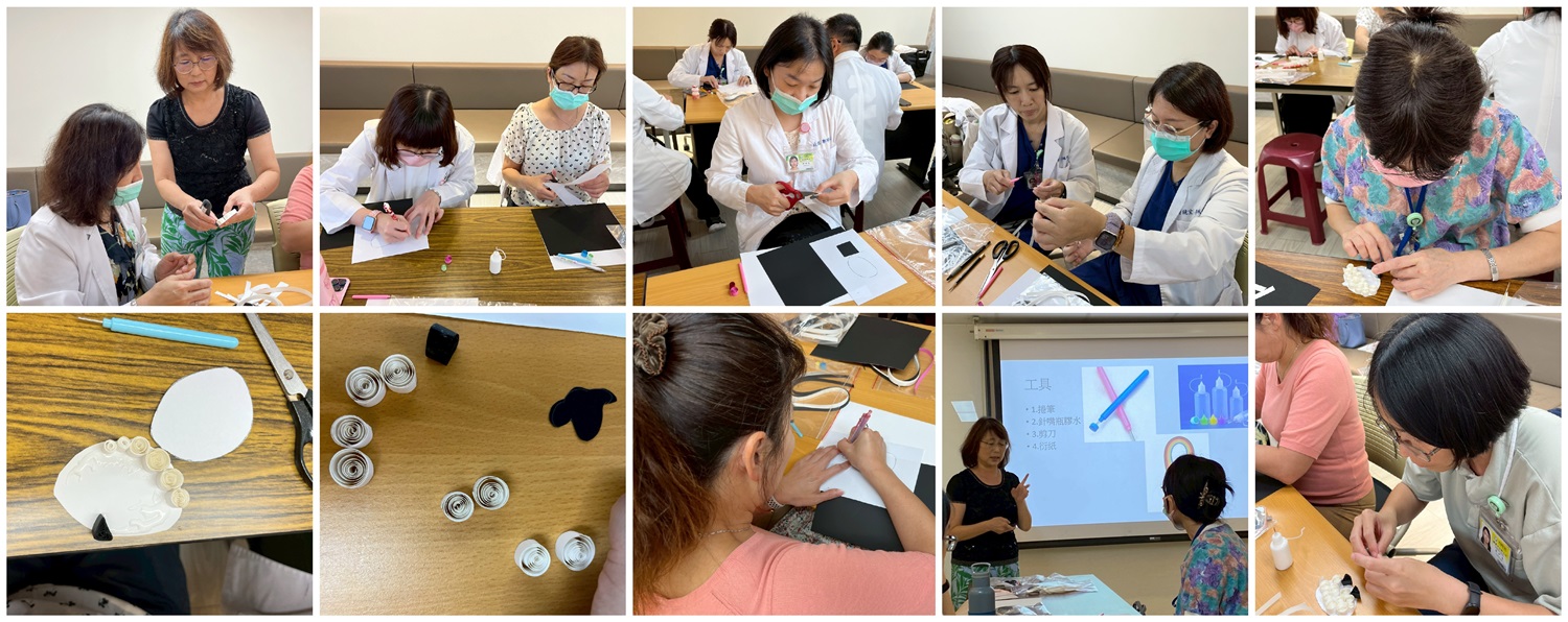 明維教育基金會希望將藝文帶入醫院,發揮藝術的療癒性,為醫院員工紓壓∼8/28(四)中午,明維基金會邀請Anita老師,到 臺北醫學大學附設醫院 ,為18位醫院員工辦理一場衍紙體驗課程。