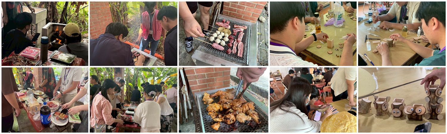午餐時間也特別讓大家一起烤肉!炭火升起,香氣四溢,大家互相幫忙,邊烤邊聊,不知不覺間拉近了彼此的距離。午後,在教室裡完成了可愛的貓頭鷹筆筒。每個作品都有不同巧思,彷彿也象徵著大家獨特的個性。
