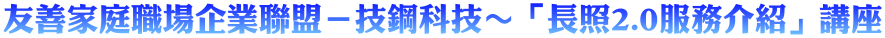為提供同仁豐富的家庭教育知識,技嘉科技於2022年起攜手百事益國際、技宸、技鋼科技加入『友善家庭職場企業聯盟』,將家庭教育資源帶入企業獲得廣大迴響∼113年起,與新北市家庭教育中心、國立臺灣師範大學攜手合作推動一系列家庭教育活動,提供友善企業職員親子活動之機會,導入友善家庭教育職場,藉由親子日活動促進家人情感交流,找到共通話題,進而建立良好親子關係,營造美滿的家庭生活。 今年9/12技鋼科技、技嘉教育基金會、新北市家庭教育中心合辦友善家庭講座,邀請到新北市政府衛生局高齡及長期照顧吳泠諠督導,為技嘉科技25位同仁帶來一場《長照2.0服務介紹》講座,將分享如何簡化服務申請,來讓大家更加了解政府推動的長照顧服務政策。