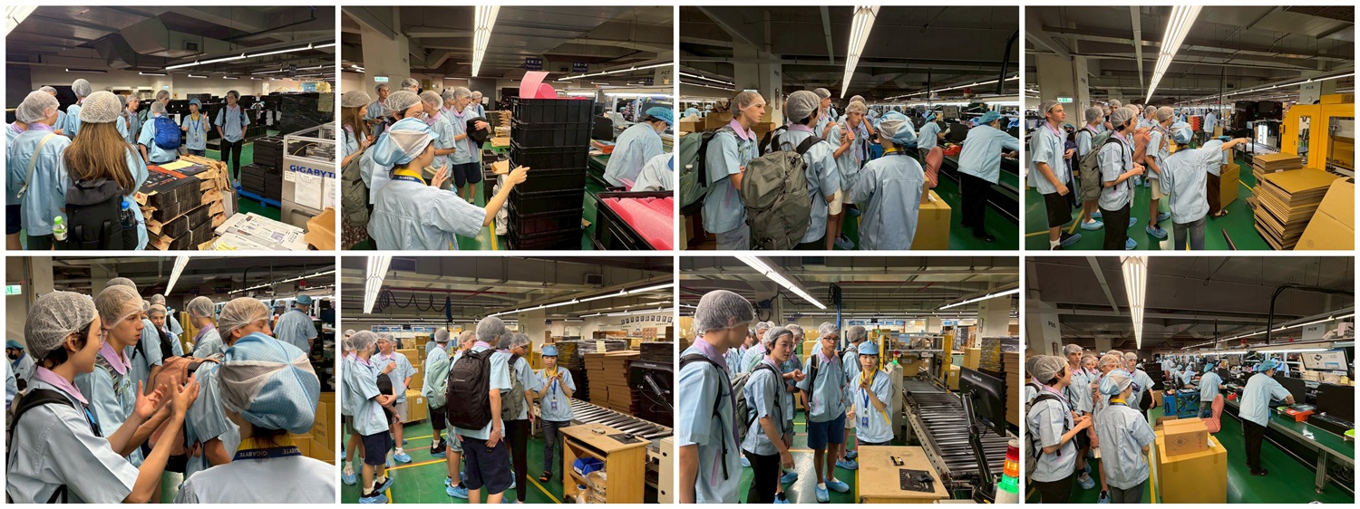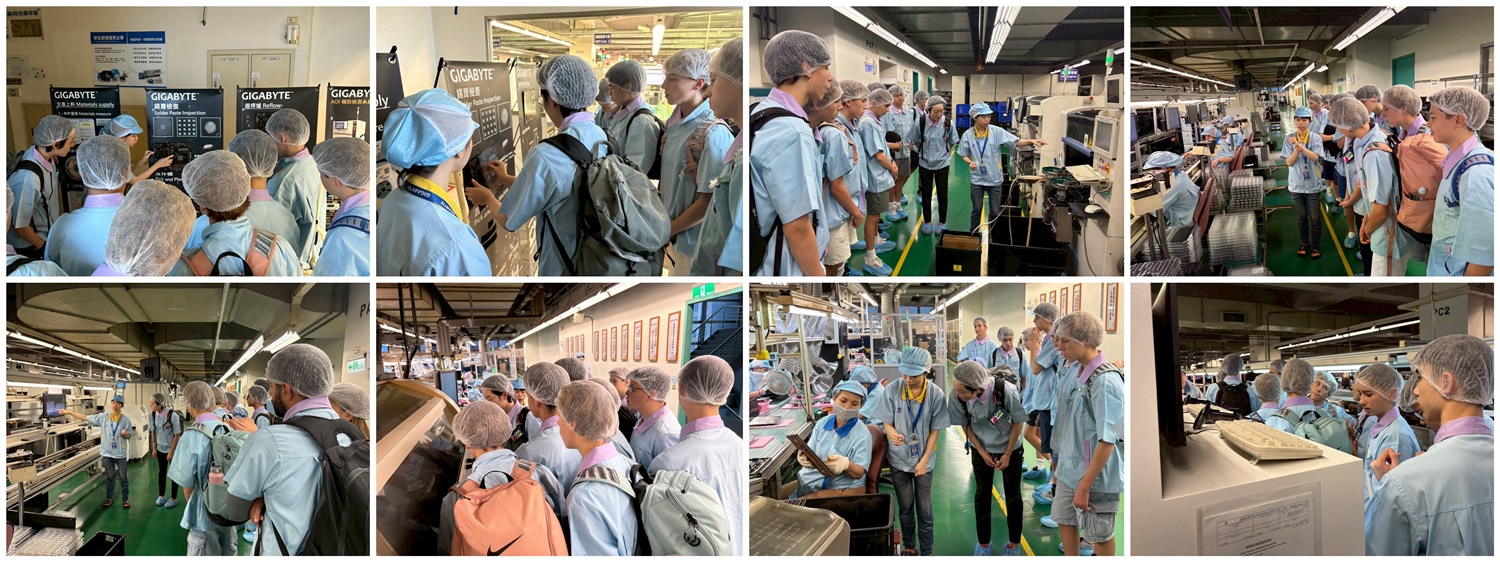 10/22歡迎來自英國雙語學校的13位熱情可愛的國中生與老師們,踏入「技嘉科技南平廠」,一起揭開「科技世界的神祕地圖」∼由南平同仁帶領同學們認識產線運作與企業發展。讓來訪的學生們親自前往產線走一遭,更能了解主機板、顯示卡是如何進行生產與測試?也讓大家清楚了解從製造端到包裝出貨的完整流程∼