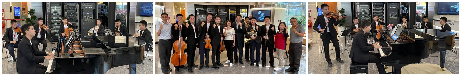 為了感謝捐血人,基金會本次特邀請「內政部替代役暨社會韌性訓練執行中心」的古典樂團組,於10:00-11:30在技嘉總部表演古典音樂,樂器配置有聲樂+鋼琴、小提琴、中提琴、大提琴、雙簧管、薩克斯風、法國號,將演奏「台灣民謠」、「甜蜜蜜」、「我只在乎你」、「新不了情」、「cello巴哈無伴奏組曲」等曲目,讓捐血人在等待的時間可以聆聽悠揚的音樂∼