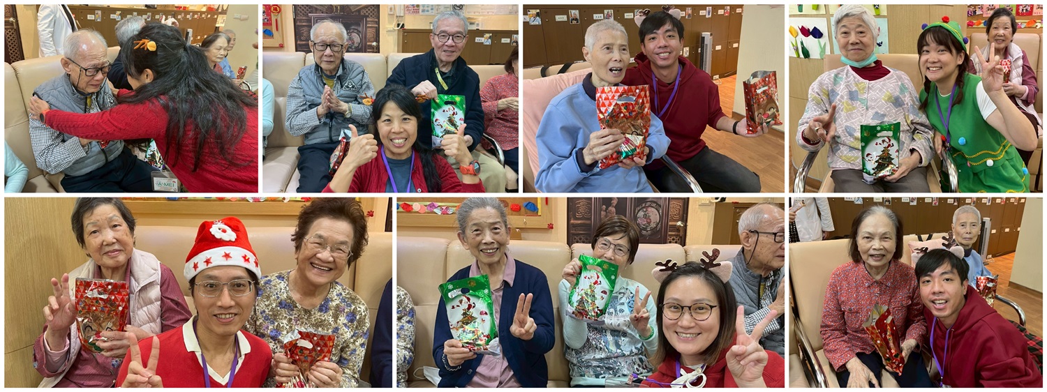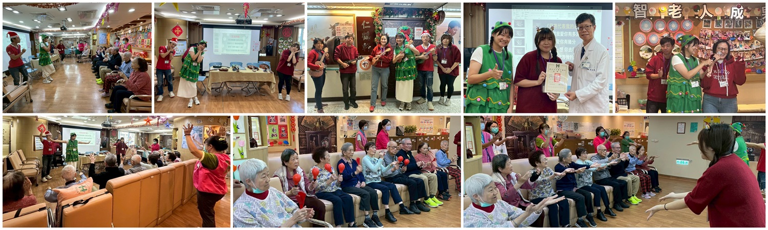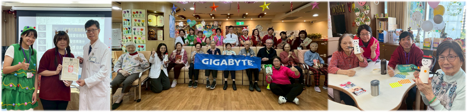 12/24聖誕節前夕,明維基金會邀請母公司技嘉科技的5位員工擔任表演志工,到臺北市立聯合醫院仁愛院區「仁鶴軒」日照中心,帶長輩做手作+帶動跳+彈唱烏克麗麗表演。