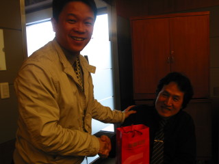 所以我們當然不能讓他們空手而歸ㄚ,基金會特別準備了二份小禮物, 並由我們劉先生親自贈送給兩位,來表達我們對他們的敬意唷! |