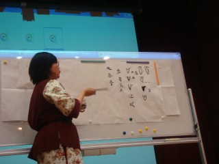 以互動與引導的方式,將基礎字源、創意古文字書畫等教學課程,讓這