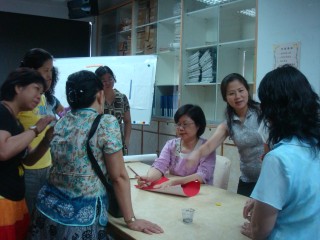 課程結束老師們紛紛請教 老師們努力學習,課程結束 老師們互動與熱情的模樣