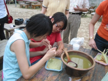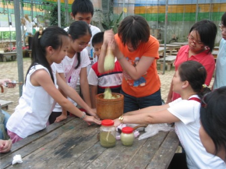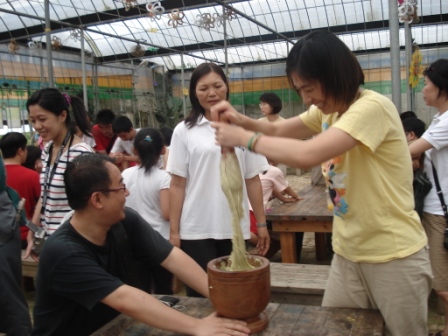 田園下午茶 ~ 客家擂茶和做麻糬教學活動,首先由一位看起來很厲害的伯伯教我們做客家麻糬,哇!大家可是都很快就學會摟!