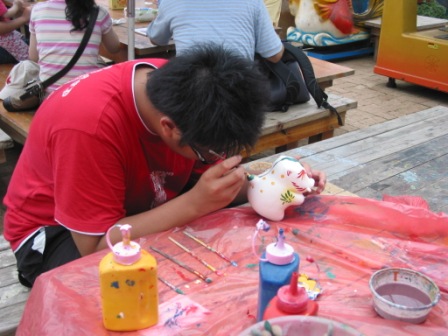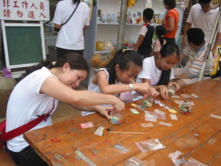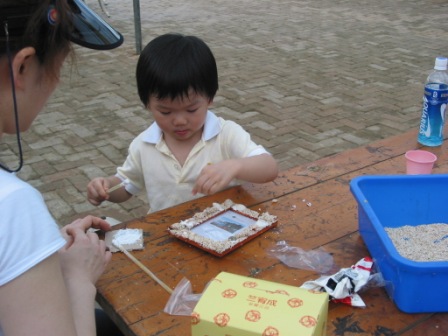 沙瓶,裡面的沙可都是自己放的喔!看他們這麼認真的樣子,等完成後一定會是個好作品喔!
